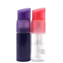 Botella de polvo de talco de plástico púrpura 60ml con bomba de pulverización